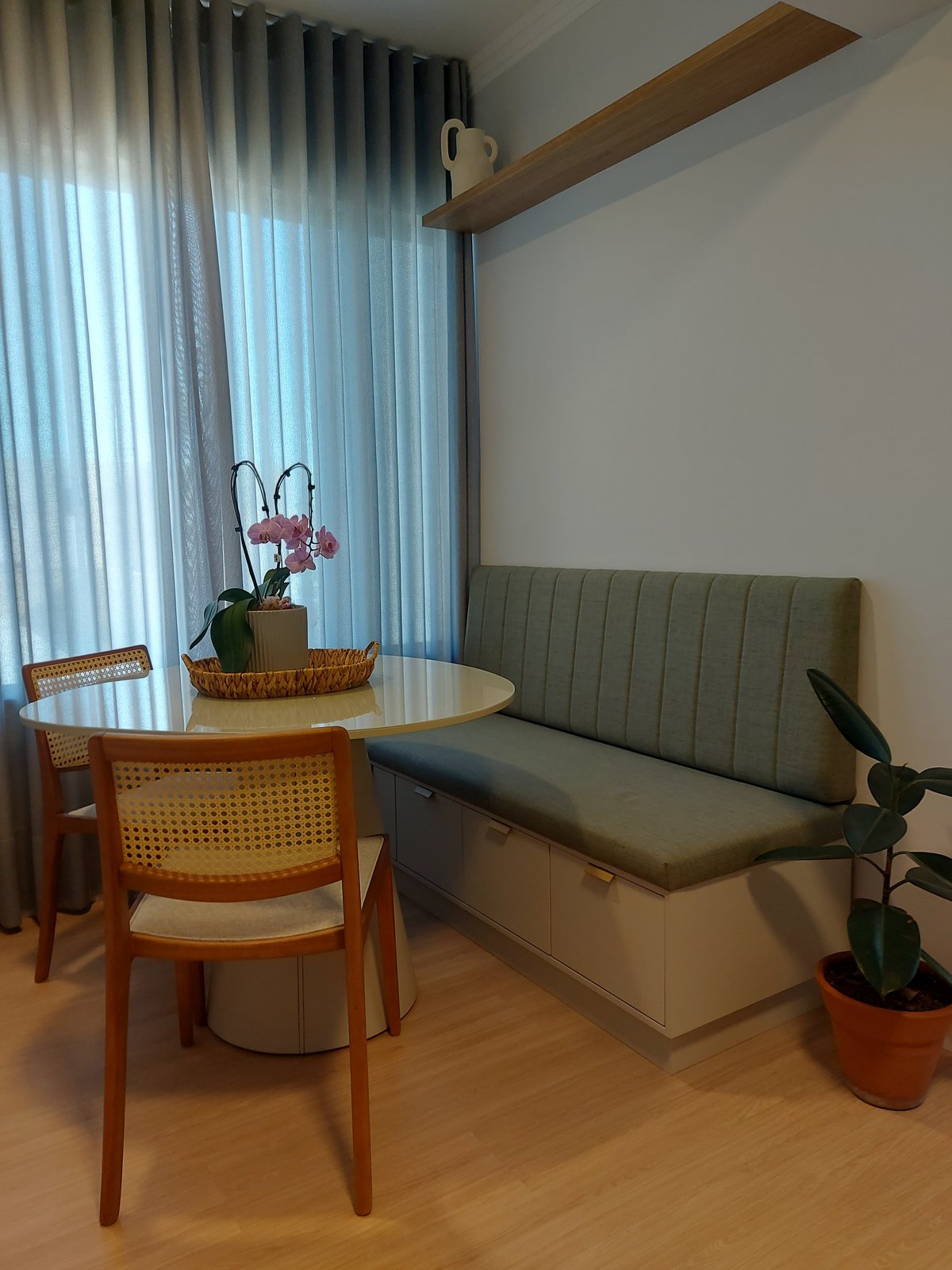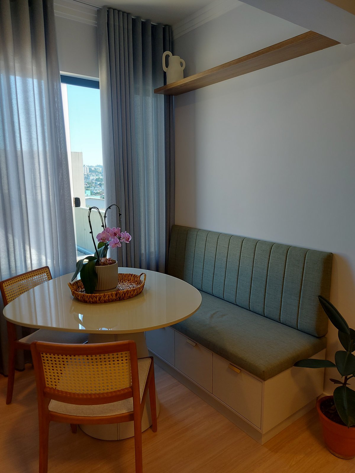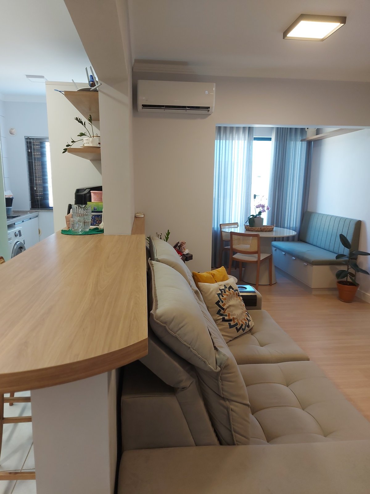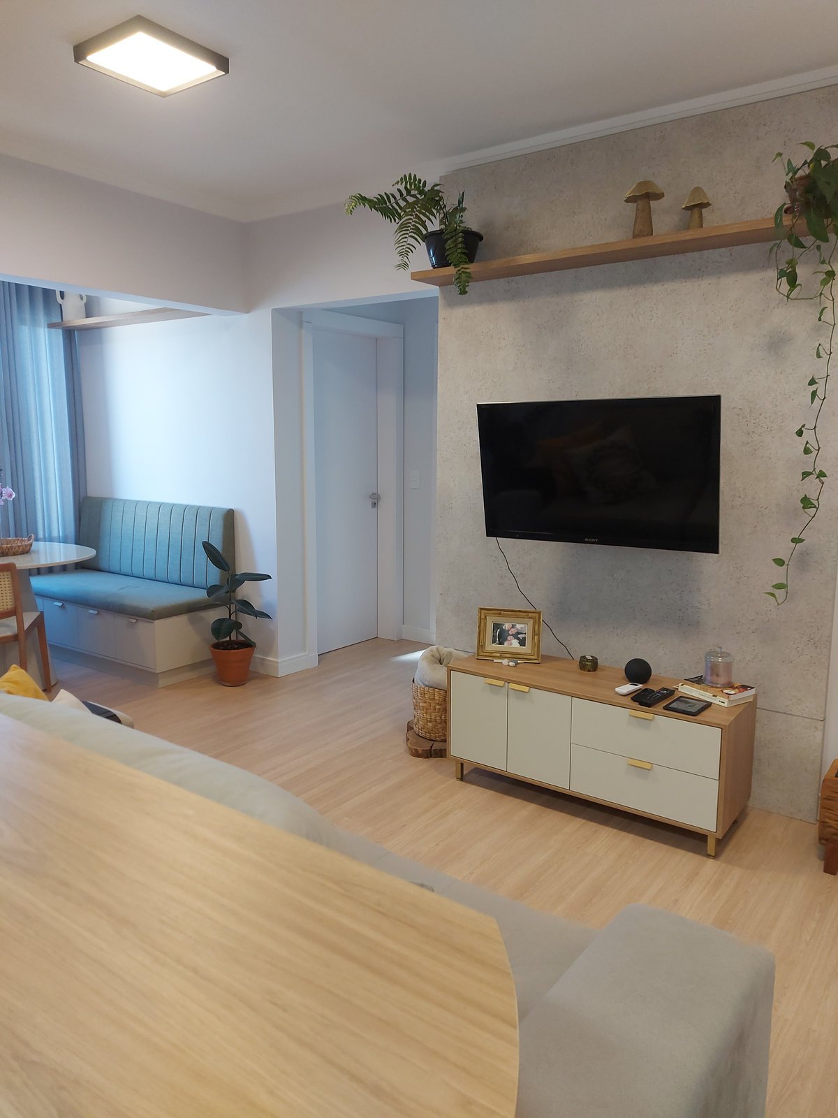 Apto 303 O projeto do Apartamento 303 foi pautado na necessidade de maximizar o uso do espaço e criar um ambiente que transmite conforto, modernidade e acolhimento por meio de soluções de design inteligente e uma paleta de cores equilibrada.